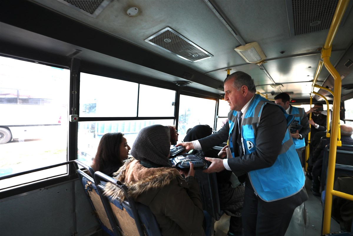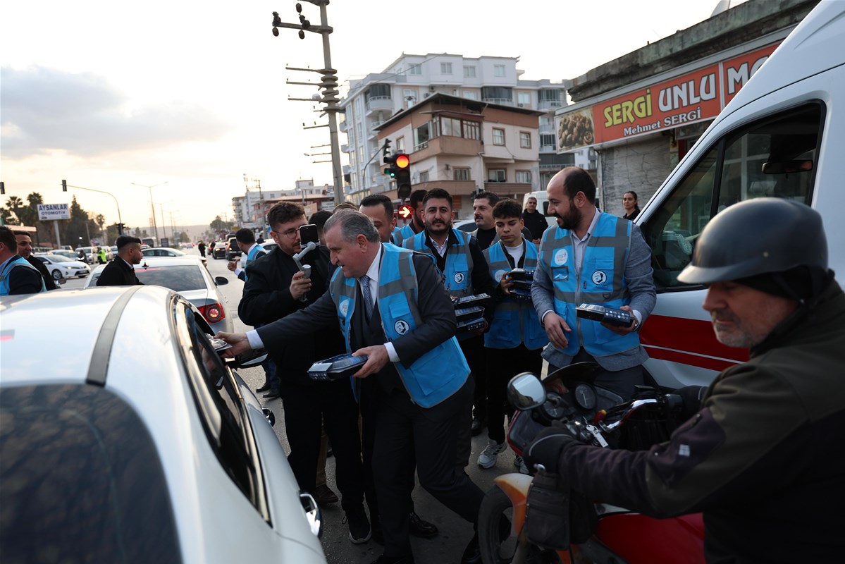 Program kapsamında trafikteki sürücülere ve yolculara kumanya dağıtan Bakan Bak, vatandaşlarla sohbet etti.