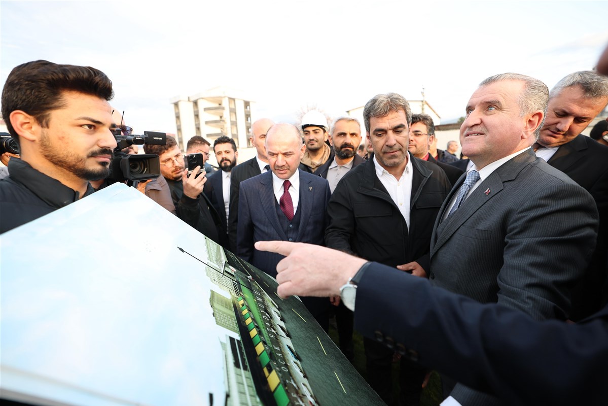 Bakan Bak yapımına yeniden başlanan 7 Ocak Stadyumu inşaatında incelemelerde bulundu.